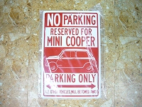 ミニクーパーパーキングオンリーのスチール製サインプレートです。サイズは約31x46cmです。