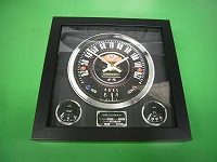 | ミニのセンターメーターをモチーフにした掛時計です。木製フレームとガラスで出来ていて別売りの乾電池にて作動します。お部屋やガレージに如何でしょうか。サイズは24cmの正方形です。 |