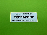 | トリプレックスゼブラゾーンステッカーです。トリプレックスはイギリスのガラスメーカーでミニのウインドーを製作していました。フロントガラスの内側から貼ります。裏貼りステッカーでガラスの表面から見えるマークも裏側と同じです。 |