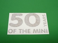| 50周年を記念して製作された外張りステッカーです。裏の紙を剥がして貼り付け良く擦った後に表の紙を剥がせばゴールドの文字のみが残ります。サイズは約11x7.2cmです。 |