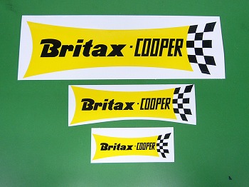 シートベルトメーカーのブリタックス・クーパーステッカーです。サイズは3種類で大225X65中135X40小80X25です。 |