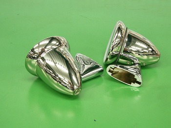TEX社製の砲弾タイプのドアミラーセットです。メッキボディーの美しい仕上がりです。取り付けは穴開け加工が必要ですが、別売りのアダプターキットを使用すればボルトオン取り付けが出来ます。 |