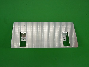 純正のアルミ製フロントナンバースティーです。ナンバープレート全体をカバーするタイプです。 |