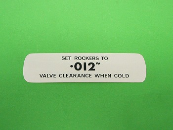 バルブクリアランスの設定を知らせるコーションステッカーです。 |