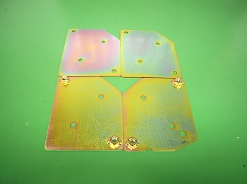 フロントフレーム後側のボディー取り付け部分の強化プレートです。ペダルの裏側にフレームマウントが付いていますが、長年の走行でクラックが入ったり変形をしてしまう場合が御座います。こちらはボディーを両側から挟んで補強致します。取り付けには加工が必要です。 |