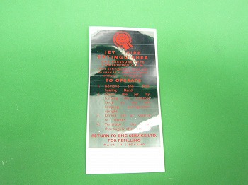 BMC時代に純正で発売されていた消火器用リプロダクションステッカーです。2種類あった小さいサイズ用です。現在の消火器に貼り付けるのも宜しいとおもいます。サイズは約8.5x4.6cmです。 |