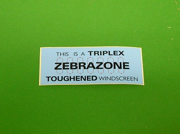 トリプレックスゼブラゾーンステッカーです。トリプレックスはイギリスのガラスメーカーでミニのウインドーを製作していました。フロントガラスの内側から貼ります。裏貼りステッカーでガラスの表面から見えるマークも裏側と同じです。 |