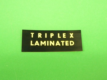 トリプレックスゼブラゾーンステッカーです。トリプレックスはイギリスのガラスメーカーでミニのウインドーを製作していました。フロントガラスの内側から貼ります。裏貼りでガラスの表面から見えるマークは黄色ベースに赤と黒文字です。 |