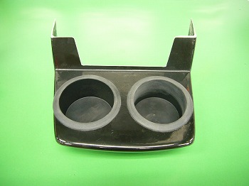 ヒータースイッチの場所に取り付けるドリンクホルダーキットです。M/T車用でクーラー取り付け車にはエバポレーターカバーやスイッチカバーの加工改造が必要になります。クーラー無しの車両にはボルトオン取り付けが可能です。製品はFRP製でこちらはブラックゲルコート仕上げです。 |