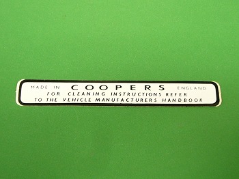 1963年頃までのクーパーMK1に取り付けされていたパンケーキ型エアクリーナーに貼り付けるクーパークリーナーステッカーのリプロダクション品です。フィルター側面に貼り付け致します。 |
