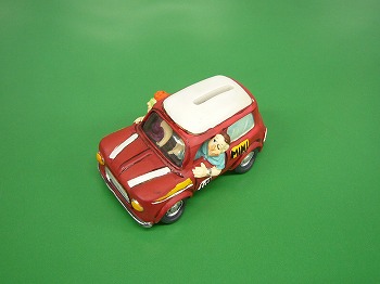 イギリス製のミニ型貯金箱です。ミニをモチーフにデザインされています。サイズは約12x7cmです。 |