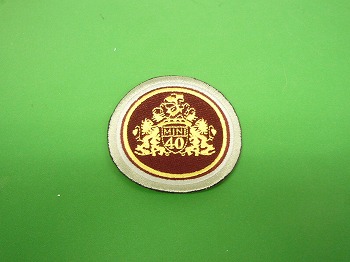 ミニ40周年アニバーサリーエンブレムをモチーフにしたワッペンです。アイロンにより貼り付け出来ます。サイズは直径約7cmです。 |