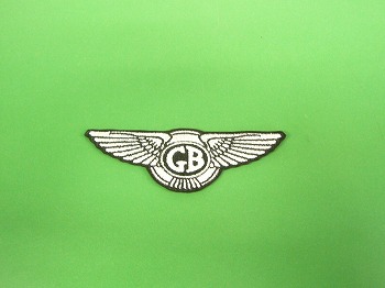 羽が付いたデザインのフライングGBワッペンです。アイロンで貼り付けが出来ます。サイズは約9x3cmです。 |