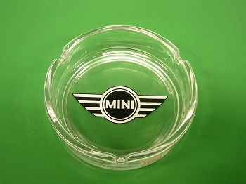 フライングミニのエンブレムロゴが入ったガラス製灰皿です。サイズは直径約10.5cmです。 |