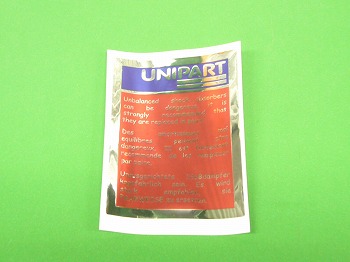 ユニパーツ純正ショックアブソーバーに貼られているステッカーのリプロダクション品です。サイズは約5.3x7.3cm |