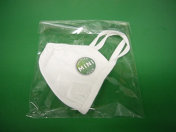 ブリティシュミニクラブロゴ入りマスクです。反対側にミニの絵が入っています。 |
