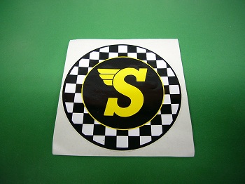 スピードウェルチェッカーステッカーです。外張りでサイズは約9.7cmです。 |