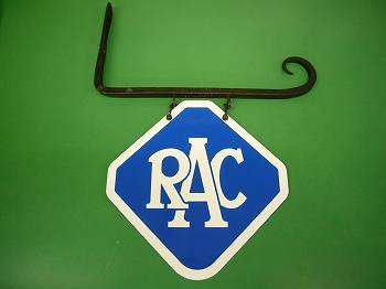 ガレージや外壁に取り付ける看板です。取付部は金属製でプレートは木製です。 |