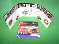 | 英国造幣局がミニ生誕50周年を記念して発行した銅ニッケルの5ポンド硬貨です。開くと中は後の様にデザインされています。限定生産で無くなり次第終了致します。 |