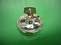 ステンレス製で回りに窪みが付いたキー付きガソリンキャップです。