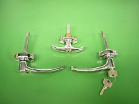 | MK1ミニ用のアウターハンドルセットです。左右ドアとトランクハンドルのセットです。1965年までのモデル用です。ドアとトランクの鍵は別の物になります。 |