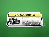 | MINIウォーニングステッカーです。ガラスに貼り付ける裏貼りタイプです。写真はサンプルの為ビニールシートに貼り付けています。サイズは16.1x7.2cmです。 |