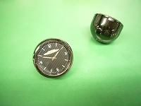 金属製の置き型時計です。直径約4cmと小さくダッシュパネル等にも貼り付け可能です。
