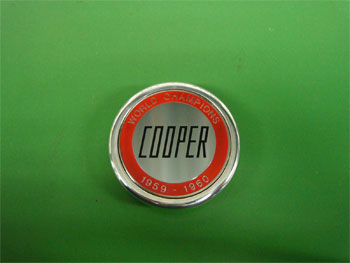 モモ、ナルディー製のステアリング、ホイール用のアルミセンターキャップです。アルミ,ポリッシュ仕上げでクーパーワールドチャンピオンのマークタイプです。センター部分にホーンボタン機能は付いておりません。 |