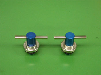 Tバータイプのロッカーカバーボルトです。ブルーのアルマイト仕上げでエンジンルームのイメージが変わります。 |