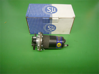イギリスSU社製の電気式フューエルポンプです。オールドミニに使用されていた物と外観は同じですが、中身は最新のポイントレスタイプになっているスグレモノです。従来のモデルは中にあるポイントが不良になりストップしてしまうことが多かったですが、ポイントレスのモデルならばそのようなことも起こりません。 |