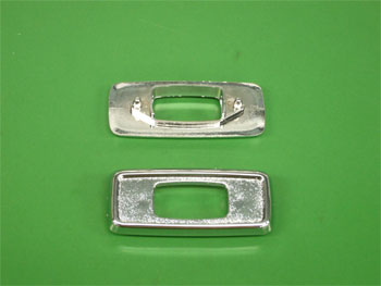 ドア内側のロックノブカバーのメッキタイプです。純正と同じ形のはめ込みタイプで取り付けはそのまま差し込むだけです。プラスチックにメッキコーティングがされています。 |