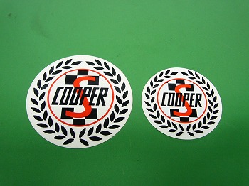 クーパーSマークのステッカーです。文字以外は透明になっています。サイズは2種類、大直径10.3cm、小直径8.4cm |