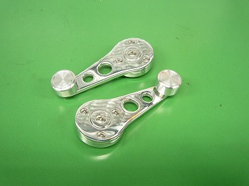 窓ガラスを開閉するハンドルをアルミ製に変更するパーツです。ボルトオン装着が可能です。1個分の価格です。 |