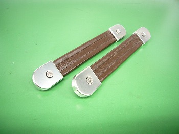 ドアを閉める時につかむ取っ手をプルハンドルと言います。こちらは純正のプラスチックの物からレザーとアルミのコンビネーションタイプの物に変更するパーツです。取り付け簡単のボルトオンです。 |