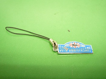 ミニ生誕50周年を記念して製作された携帯ストラップです。サイズは30X13mmでプレゼントとしても喜ばれますよ。 |
