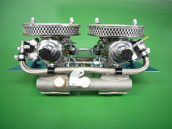 SU社製ツインキャブレターキットです。インテークマニホールド、リンケージ、ヒートプレートがセットになっておりますのでシングルキャブレター車やインジェクション車に取り付ける場合には最適です。ジョンクーパーのキャブレターモデルに使用された物と同じサイズです。 |