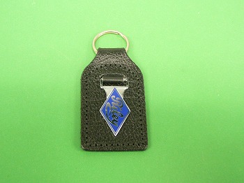 ライレーレザーキーホルダーです。ライレーのエンブレムをモチーフにしたひし形タイプです。 |