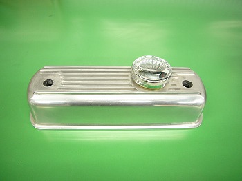 1960年代風のアルミロッカーカバーです。フィンが付いたクラシカルなデザインとなっております。クロームオイルフィラーキャップ付きです。 |