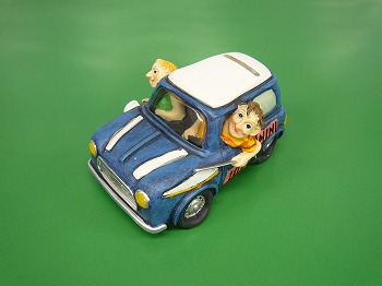 イギリス製のミニ型貯金箱です。ミニをモチーフにデザインされています。サイズは約14x8.5cmです。 |
