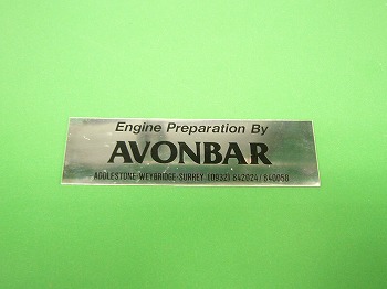 イギリスのチューニングメーカーエイボンバーのロッカーカバープレートです。アルミ製で両面テープにて貼り付け致します。サイズは10.7x3.2cmです。 |