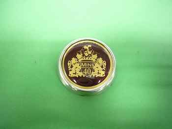丸型フロントエンブレムです。マークはビニール表面加工されています。取り付けは両面テープで貼り付けるタイプです。 |