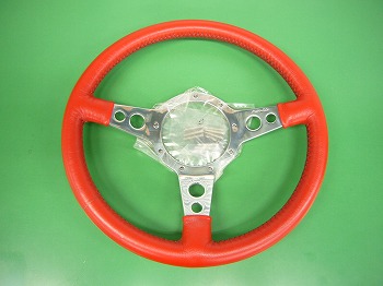 モトリタ性13インチディシュのレザーステアリングです。特別に発注されたレッドレザータイプとなります。 |